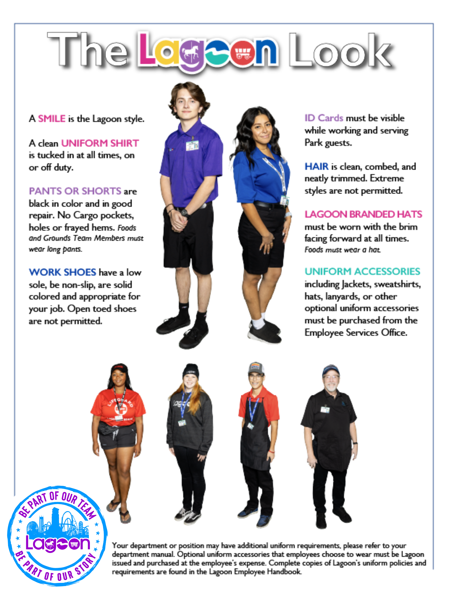 Just a friendly reminder: Smoking or vaping is not allowed on the park, including the Employee Locker Area, while in uniform. Additionally, no employee under the age of 21 is allowed to smoke or vape on Lagoon property under any circumstances, no exceptions!